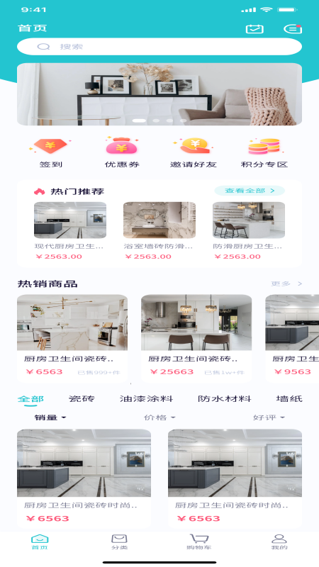 商品分类清晰明了,采用智能搜索和精准筛选功能,让您3秒内找到所需建材;款式丰富多样,每周上新200+潮流新品,满足不同装修风格的选购需求;价格亲民实惠,平台承诺买贵退差价,确保用户享受最优采购方案。此外还提供3D样板间展示功能,帮助用户直观感受装修效果。