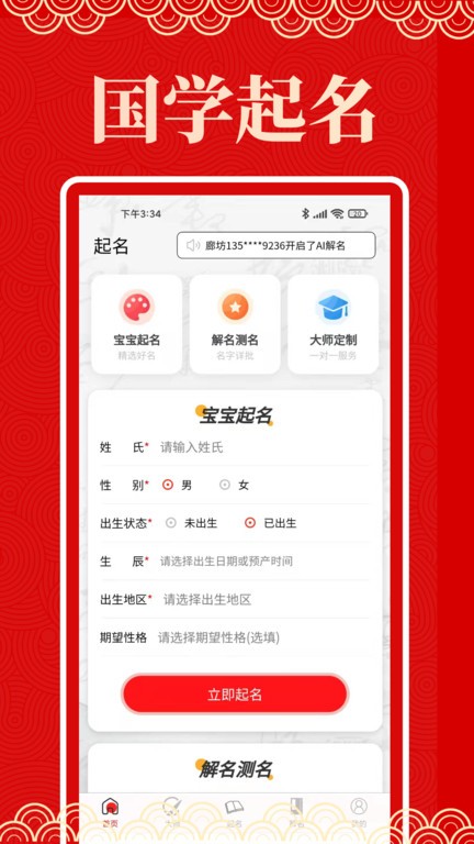轻轻松松就能取得好名字,让你对自己的名字奥秘了如指掌,软件提供详细的命名解析报告,帮助用户理解每个名字的深层含义;