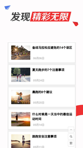 提供运动注意事项,备战马拉松、夏天跑步和晨跑、路跑过程中需要注意的事情这里都有提示;专业教练团队定期更新运动指南,涵盖热身、补水等20+个关键知识点。