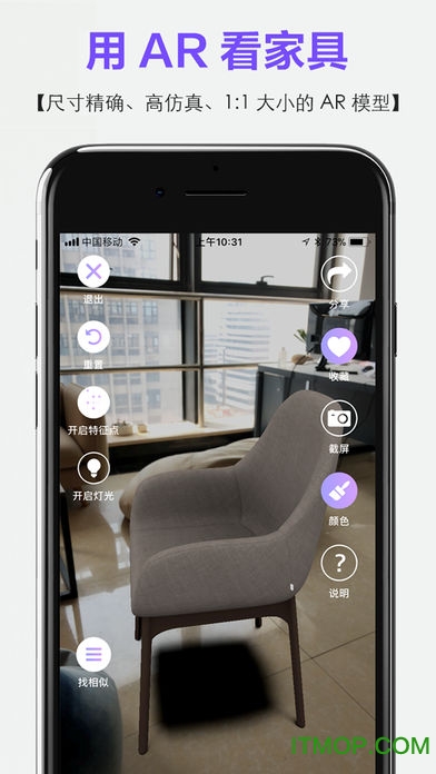 -截屏:提供AR预览界面的截屏功能,家居适不适合客厅,截屏下来分享给好友一起帮忙看;