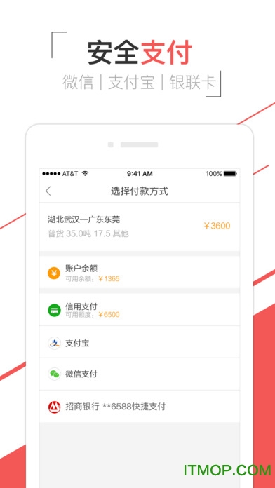 线上支付功能:创新性地实现了运费线上支付结算,司机无需亲自跑信息部,所有线上支付订单都由平台提供担保服务,资金安全有保障。