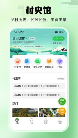 以个人为中心,可以在线创建家谱,便于家族传承血脉,让家族历史得以永久保存和延续;提供最新村庄信息和发展趋势,让用户快速了解村庄动态,掌握第一手资料;所有收藏和发布的动态都能随时在线查看,了解最新情况,不错过任何重要信息;全面的乡村介绍内容,可以带你领略每个村子的乡土民情,感受不同地域的文化特色;及时更新推送最新热门的村史馆,你可以及时在线阅览了解,发现更多精彩内容。
