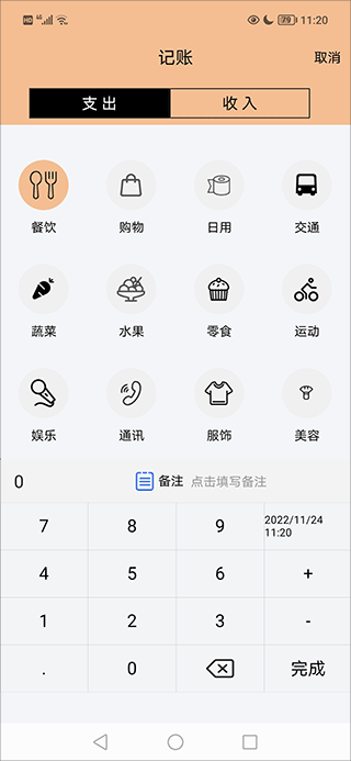打开软件后,在首页醒目位置就能看到"记一笔"功能按钮,点击即可开始记录。系统提供了丰富的收支类型选项,包括餐饮、交通、购物等常见分类,用户可根据实际情况选择。输入金额时支持小数点后两位精确记录,备注栏可以填写详细的消费说明。完成记录后,数据会立即同步到首页的账单列表中,方便随时查看。如需继续添加新记录,只需点击页面底部的绿色加号按钮即可。