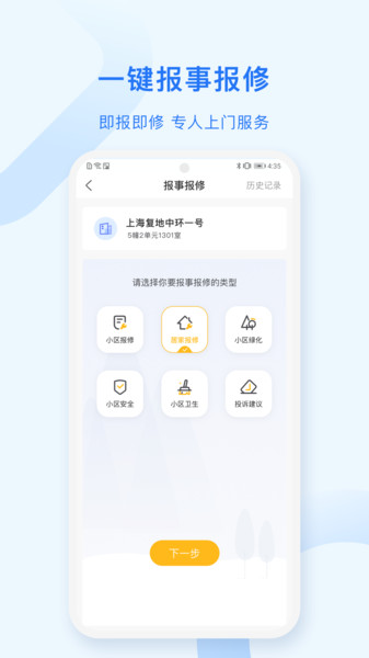 一键报事报障系统:遇到任何问题只需轻轻一点,系统会自动分配最近的维修人员上门服务。维修进度实时可查,让业主随时掌握服务动态。