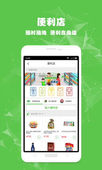 便利店:将"互联网+"便利店搬到您家门口,24小时营业不打烊,随时随地轻松下单,专业配送团队确保商品快速送达,让您足不出户享受购物乐趣。