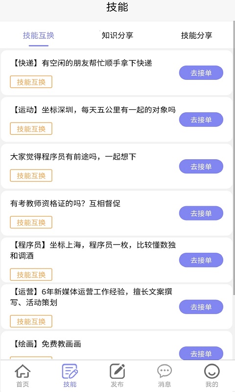 技能互换功能让您能够发布自己的特长技能,同时浏览他人提供的技能列表。当发现匹配的技能需求时,可以发起互换请求,实现双方技能的互补。这种互惠互利的模式不仅节省了学习成本,还能结识志同道合的朋友。