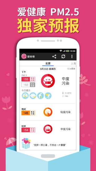 爱呼吸是国内首款专注于PM2.5预报的空气质量监测应用,凭借其创新的预报技术和贴心的健康服务,已成为数百万用户信赖的空气健康助手。作为行业领先的空气质量预报平台,爱呼吸不仅提供全国主要城市未来72小时的精准PM2.5预报,更通过智能算法为用户量身定制健康防护建议。