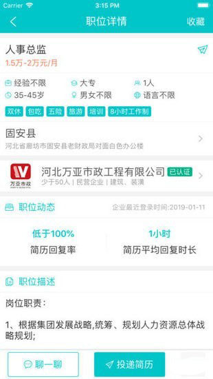 便捷沟通体验:内置即时通讯功能,可以像使用微信一样随时与HR在线沟通,简化求职流程。