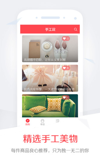 手工说app是您探索优质手工创意生活的完美指南。作为国内领先的纯手工个性化时尚电商平台,我们汇聚了来自全球各地的匠心之作,为您精选最具特色的原创潮品、萌趣好物和创意礼品。平台拥有100多位专业手工爱好者组成的推荐团队,他们以独到的眼光为您甄选每一件商品,确保品质与创意并存。在这里,您不仅能购买到心仪的手工艺品,还能了解背后的创作故事,感受手工艺术的独特魅力。