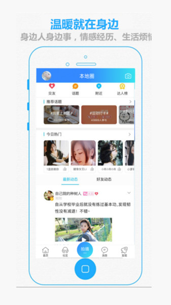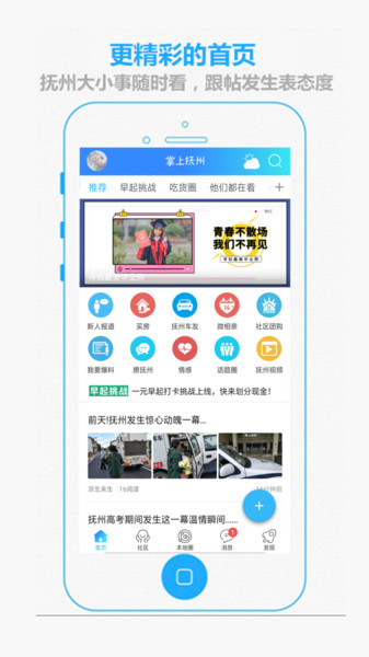 发照片,晒生活。平台提供便捷的分享功能,让用户即拍即发,打造抚州人自己的朋友圈。不管是生活感悟,旅途风景,还是突发现场,随时分享新话题。据说全抚州最有趣的人都在这!用户可以通过图片、视频、文字等多种形式记录生活,与同城好友互动交流。