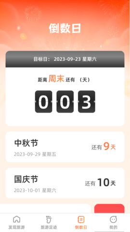 倒数日功能:贴心的节日倒数提醒服务,帮助你记录重要旅行日期和特殊节日。无论是计划中的假期还是朋友生日,设置好倒数日后,软件会提前提醒,让你不再错过任何重要时刻。