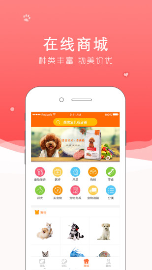 宠物商城提供各个种类的宠物并为宠物提供各种服务,包括美容、医疗、寄养等专业服务预约,满足宠物全生命周期需求
