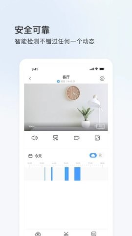为客户提供实时监控、云端和SD卡视频回放、语音对讲、报警消息推送等音视频安防功能,构建全方位的安全防护体系;保障家庭、商铺、办公室等场所的财产安全,有效预防盗窃等安全事件。软件还支持用户在线收听监控现场的录音,清晰还原现场声音;从而了解现场情况,还可以保存需要的监控图片,作为证据留存。同时支持视频剪辑功能,方便用户截取重要片段。