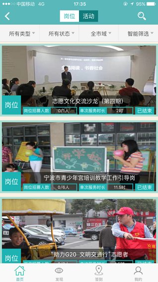 -项目搜索,基于LBS技术的智能推荐系统,可根据用户位置、兴趣标签、时间安排等维度,精准匹配适合的志愿服务项目。支持按区域、类型、时间等多条件筛选,让公益参与更个性化。