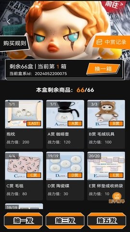 多样化盲盒选择:提供多种主题、系列的盲盒,满足不同用户的喜好。您可以轻松下订单并期待惊喜。平台每周都会上新20+款限定盲盒,涵盖动漫、游戏、影视等多个领域,总有一款能打动你的心。