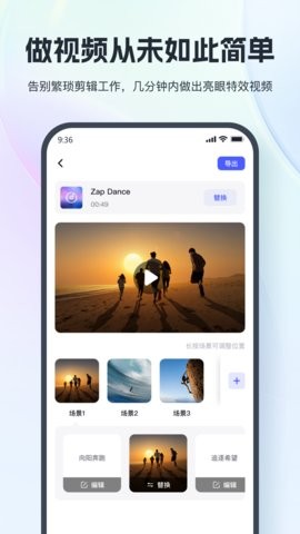 轻松制作视频:告别传统繁琐的视频剪辑过程,只需简单几步操作,几分钟内就能完成带有炫酷特效的专业级视频制作,大幅提升工作效率。