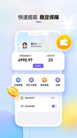 萌艇车主APP为司机提供了全方位的优质服务。首先,平台采用透明化订单展示,所有订单信息包括路线、价格、乘客评价等都清晰可见,司机可以根据自身情况选择最适合的订单。其次,软件支持智能抢单和系统派单两种模式,司机可以自由切换,工作时间完全由自己掌控,一键出车功能让接单更便捷。最重要的是,所有订单收益都是实时结算,直接到账,支持随时提现,彻底解决了传统行业工资拖欠的问题,让司机收入更有保障。