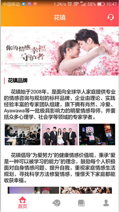 花镇是国内领先的婚恋咨询与情感成长服务平台,拥有8年行业深耕经验,53位持证专业导师和769位情感达人组成的强大团队。平台专注于提供告别单身、婚恋心理、情感提升、婚姻修复、挽回恋情等全方位情感解决方案。通过专业的心理咨询技术和丰富的实战经验,为用户的幸福保驾护航。平台采用科学的评估体系,针对不同用户的情感需求提供个性化服务,帮助用户建立健康的情感关系。