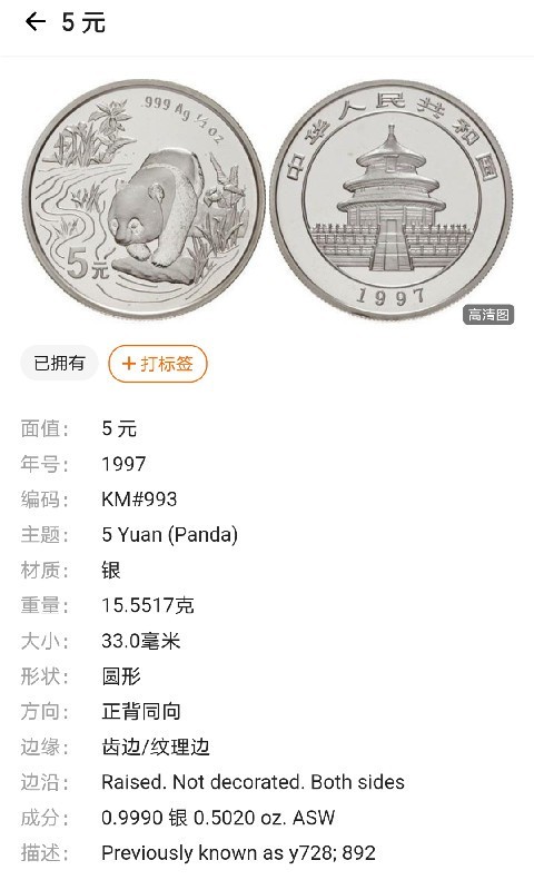 每枚硬币的资料都包含多个维度的专业信息:面额、发行年份、主题、国际编码、材质、成分、重量、大小、形状、方向、边缘、边沿、发行量、造币厂、题材等专业参数。同时,还提供了正反面的详细说明文字,并附有大多数硬币的官方图片或实物照片,让用户可以全方位了解每一枚硬币的特征。