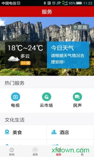 生活服务:整合恩施地区各类生活服务资源,包括水电缴费、交通违章查询、医院挂号等便民功能。