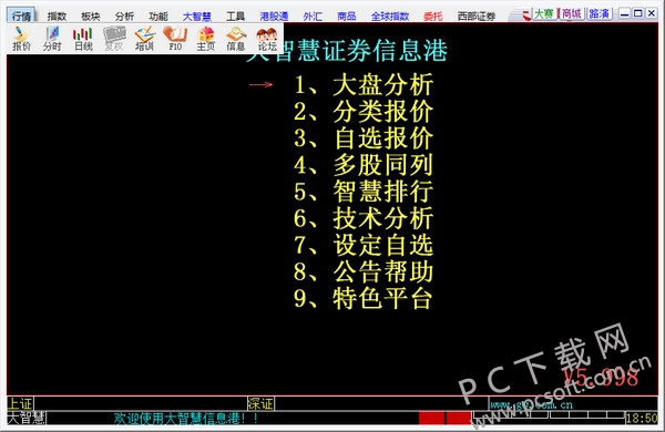 西部证券大智慧是一款功能强大的证券信息分析平台,集行情显示、信息接收和投资交易于一体。作为专业的金融终端软件,它不仅保留了传统行情软件的经典界面和操作方式,更创新性地整合了投资赢家交易平台,为用户提供全方位的证券投资服务。该软件特别设计了直观的星空图分析功能和精准的散户线指标,在继承主流技术分析工具的基础上,持续推出创新功能模块,帮助投资者更准确地把握市场脉搏。PC下载网作为官方指定下载渠道,为用户提供安全可靠的软件下载服务,欢迎广大投资者下载体验。