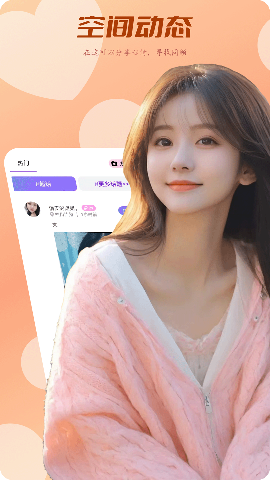 【语音聊天】当你想要分享生活点滴却不想露面时,洞聊的语音聊天功能就是最佳选择。在这里,你可以用声音传递情感,讲述生活中的精彩瞬间,发现平凡日子里的闪光点。无论是倾诉心事还是分享快乐,每个人都能在这个温暖的空间里找到属于自己的小角落,结识真正懂你的朋友。