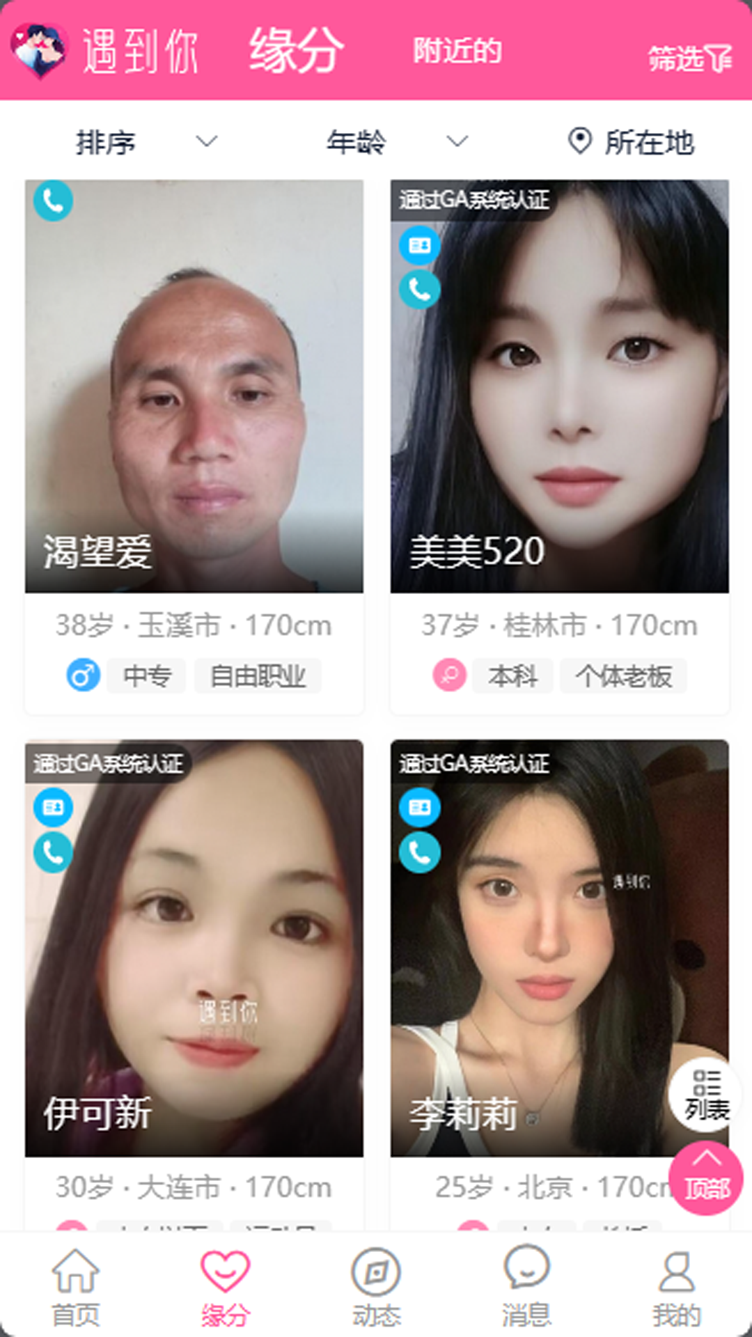 平台采用先进的大数据算法,根据用户的兴趣爱好、性格特点和择偶标准,精准推荐合适的对象。无论是想要寻找长期伴侣,还是希望拓展社交圈子,我们都能满足不同用户的需求。同时,我们注重用户隐私和安全,严格审核会员资料,确保交友环境的真实可靠。