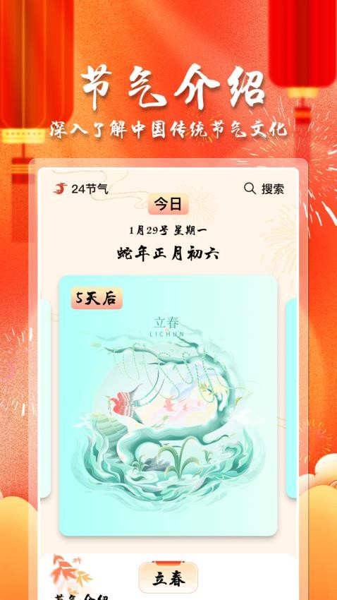 每个节气的介绍不仅包含基本信息,还延伸讲解相关民俗活动、养生建议等实用内容,让学习更加生动有趣。