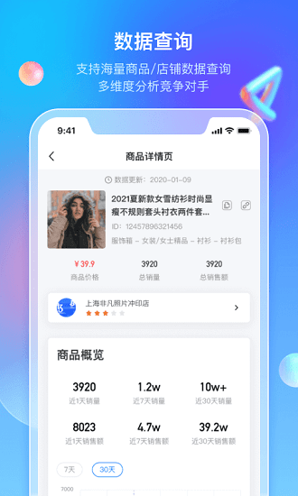 支持海量商品/店铺数据查询,包括历史销售数据、价格走势、评价分析等多维度信息,帮助商家做出更明智的决策。