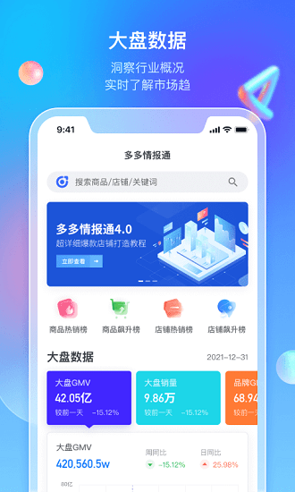 多多情报通手机版是一款专为电商从业者设计的移动端数据分析工具,致力于为商家提供全方位的市场洞察与运营支持。通过这款应用,用户可以轻松获取热销商品榜单、店铺排名、行业热词等关键数据,还能实时监控竞争对手动态,全面掌握市场趋势。其强大的数据分析能力和直观的可视化报表,能够帮助商家快速制定精准营销策略,优化商品布局,从而在激烈的电商竞争中脱颖而出。无论是新手卖家还是资深运营,都能通过这款工具显著提升工作效率和经营效益。