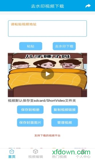 "去水印视频下载"是一款集多功能于一体的专业视频处理工具。它不仅支持从各大主流短视频平台下载无水印视频,还内置了强大的视频编辑功能。无论是个人用户还是专业团队,都能通过这款软件轻松实现视频去水印、加水印、剪辑等操作。软件界面简洁直观,操作流程简单明了,即使是视频编辑新手也能快速上手,让您的视频处理工作事半功倍。