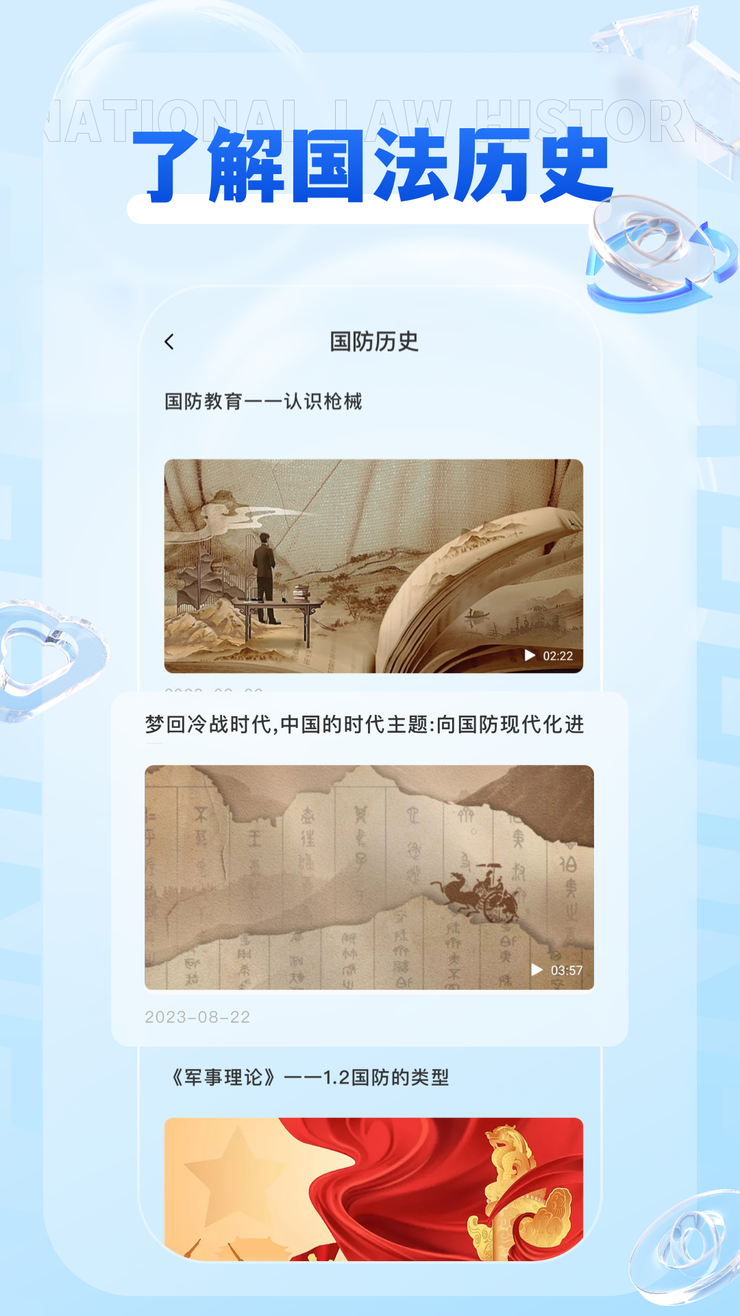 趣味国防科普板块以轻松有趣的方式普及国防知识,内容涵盖军事科技、武器装备、国防历史等多个领域。通过生动的动画、互动游戏和趣味问答,让用户在轻松的氛围中学习实用技能。科普内容不仅适合青少年,也适合成年人拓宽视野。平台还会定期更新最新科技动态,让用户紧跟时代步伐,了解前沿国防技术。