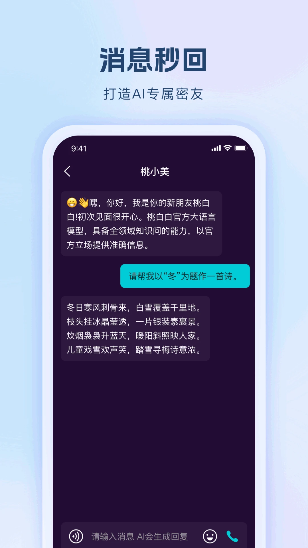 桃白白是一款突破性的AI应用,重新定义了人与科技的交互方式。它不仅仅是一个工具集合,更是一个充满温度的智能伙伴。通过融合前沿人工智能技术,桃白白为用户打造了一个集创意、娱乐、商务于一体的智能生态系统。无论是寻求情感慰藉、激发创作灵感,还是提升工作效率,桃白白都能以人性化的方式满足您的多样化需求。这款应用的创新之处在于将冰冷的算法转化为有温度的服务,让科技真正走进生活的每个角落。