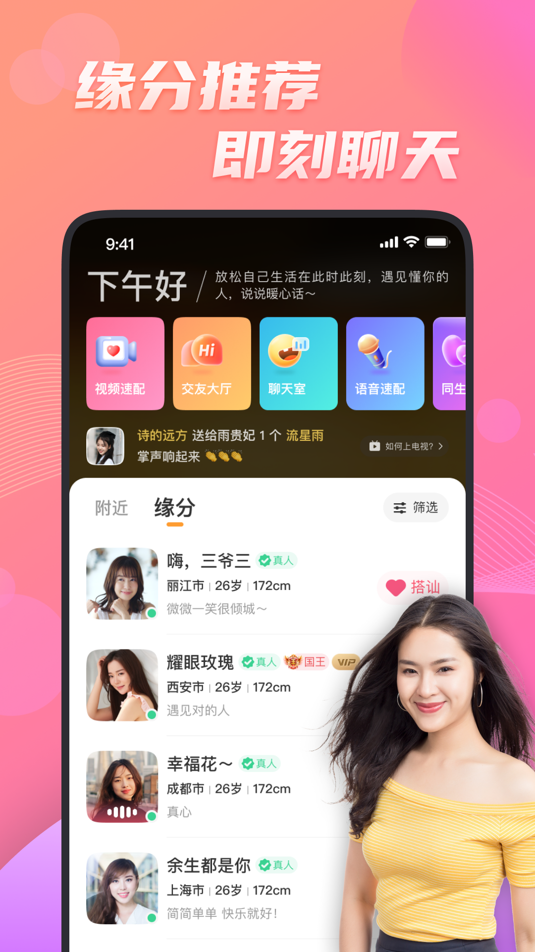 茫茫人海中,相遇不易,相知不易,相爱更不易。花缘深知这份不易,因此我们精心设计了独特的匹配机制和互动功能,帮助你在千万用户中找到那个特别的人。无论是寻找知心朋友,还是期待浪漫爱情,花缘都能为你提供最贴心的服务。