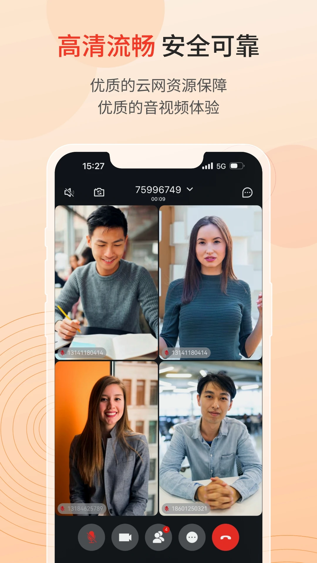这是一款具有完全自主知识产权的5G直连视频会议系统,采用运营商级云架构设计,为用户提供专业级的视频会议体验。系统不仅具备互联网会议系统常见的超大并发支持和丰富功能,还创新性地集成了5G VoLTE/VoNR技术,实现了会议系统与用户手持终端的无缝对接。