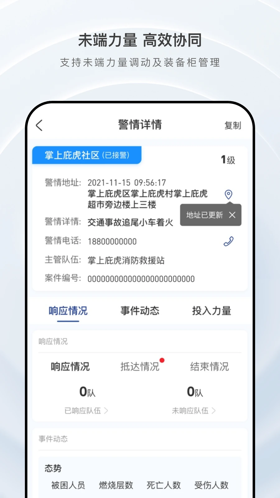 对末端应急救援资源的统一调度及支援社会救援力量的应急救援装备管理。系统整合各类救援资源信息,建立智能调度算法,可根据灾情类型、位置等因素自动匹配最优救援方案。支持与119指挥中心无缝对接,实现警情快速响应与资源精准调配。