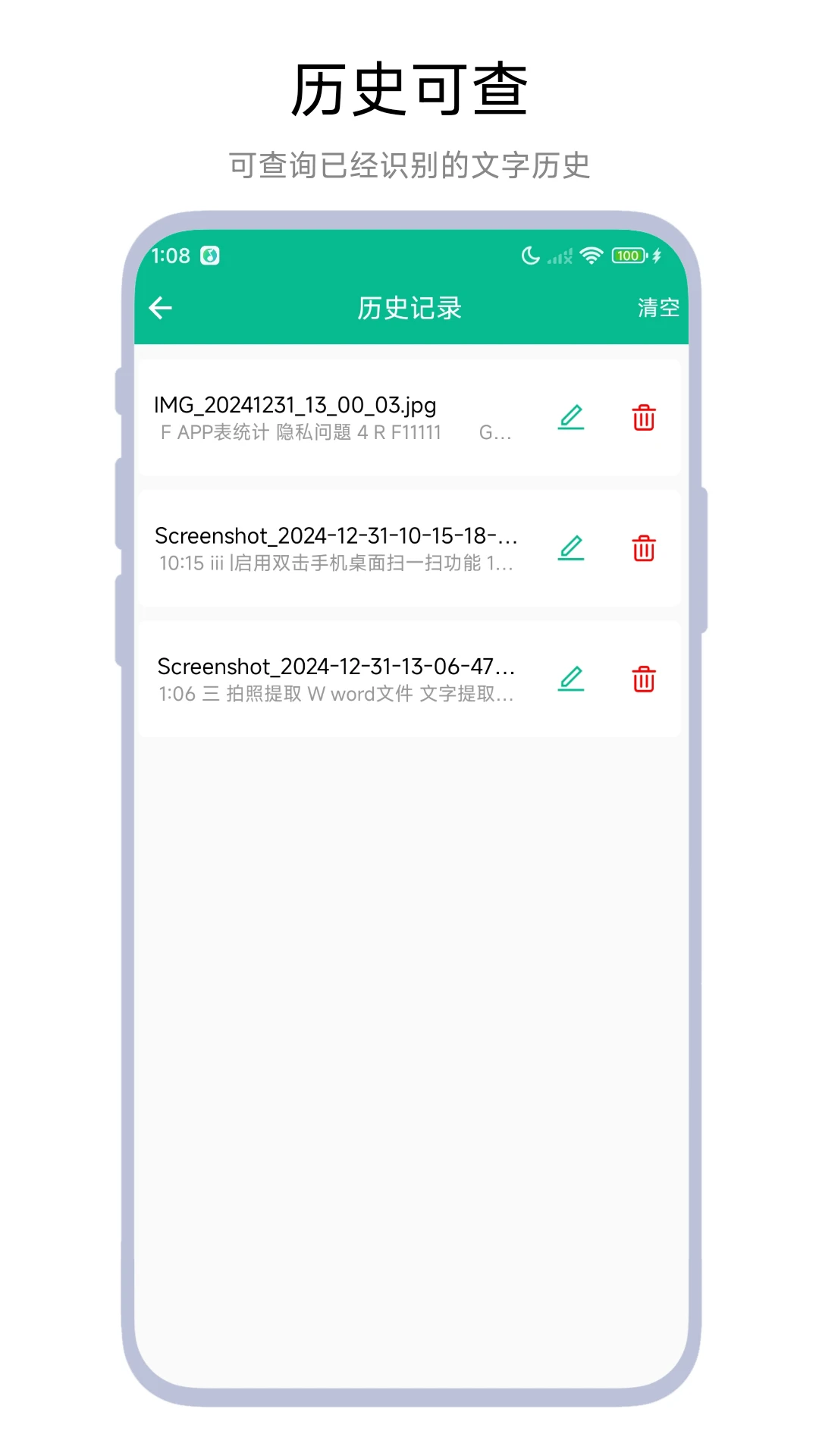 这是一款功能强大的文字提取工具,能够帮助用户在日常学习、工作和生活中快速获取图片或文档中的文字内容。软件采用先进的OCR识别技术,只需简单拍照就能将图片中的文字精准提取出来,大大提升了信息获取的效率。无论是纸质文件、电子文档还是各类图片,都能轻松转换为可编辑的文本,为用户提供便捷的文字识别服务。此外,软件还支持多种格式的文档处理,满足不同场景下的使用需求。
