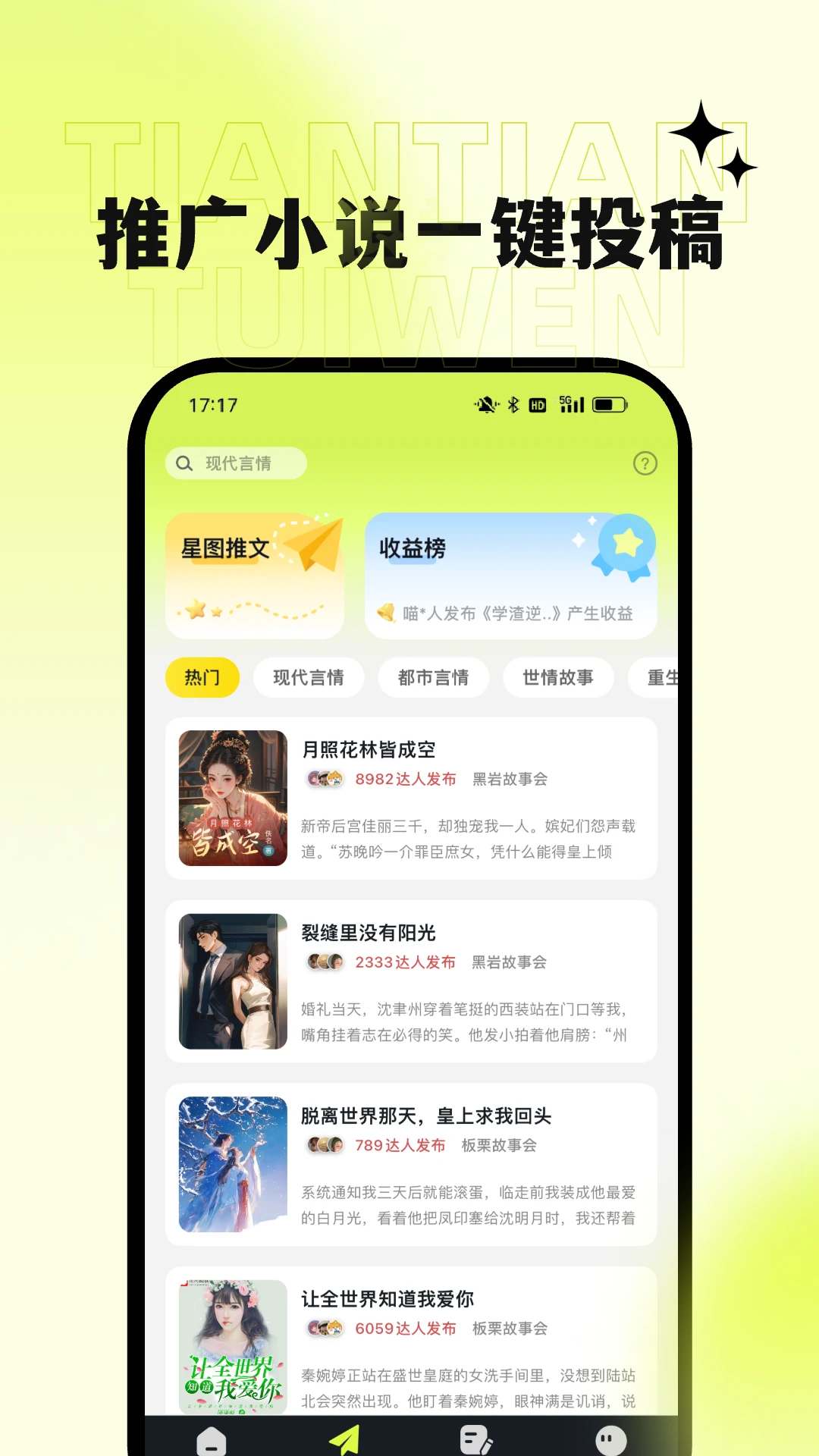 天天推文是一款专为小说推文创作设计的创新工具,无论你是刚入门的新手还是经验丰富的创作达人,都能在这里找到适合自己的高效创作方式。这款软件通过智能化的功能设计,让小说推文创作变得前所未有的简单有趣,绝对能给你带来耳目一新的体验。
