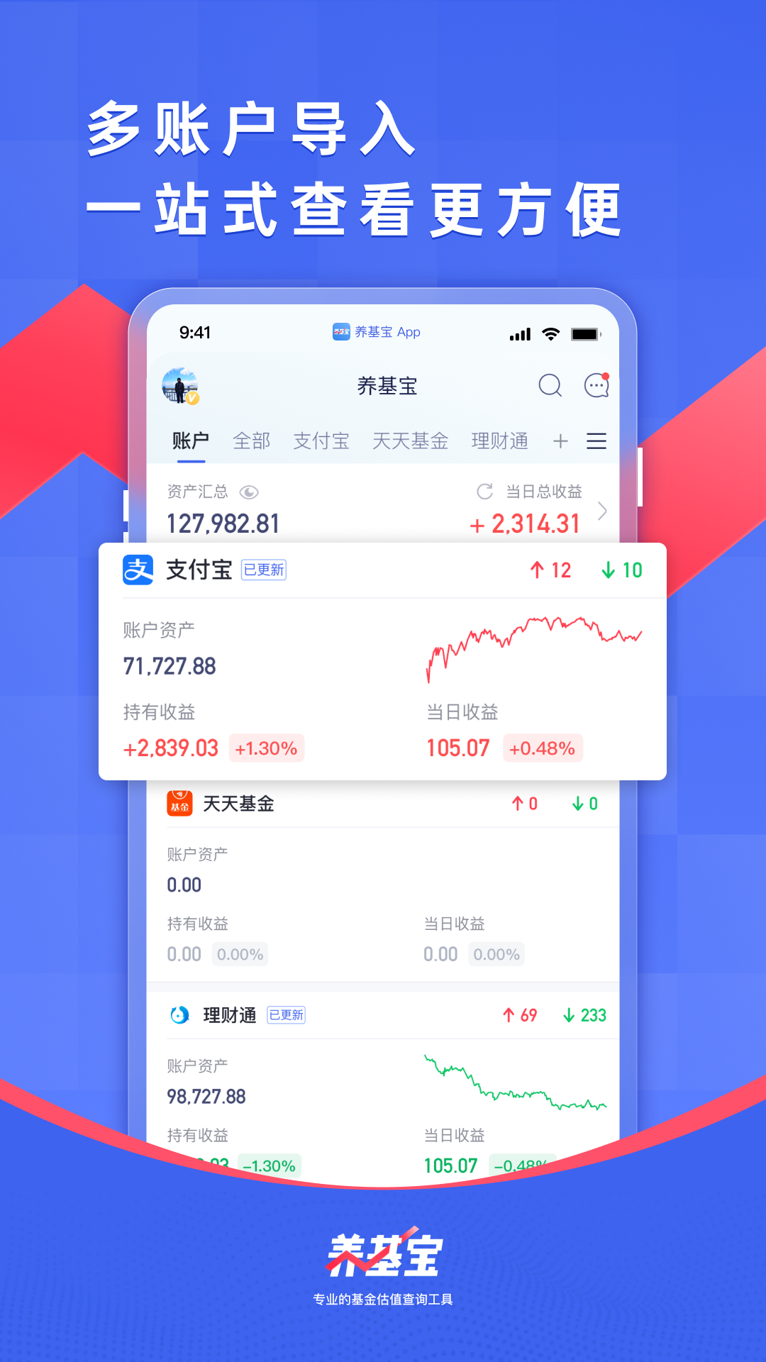 养基宝提供全方位的基金投资辅助功能:可免费查看基金实时涨跌和收益情况,帮助用户把握最佳买卖时机;今日基金加减仓榜基于海量用户行为数据分析,反映市场最新动向;支持多平台基金持仓汇总管理,告别账户分散的烦恼;独创的图片识别技术可一键同步支付宝、腾讯理财通等主流平台的持仓信息;还提供基金涨跌提醒、每日净值更新通知、盈亏分析报告、多账户账本管理等实用功能,让基金投资更轻松高效。