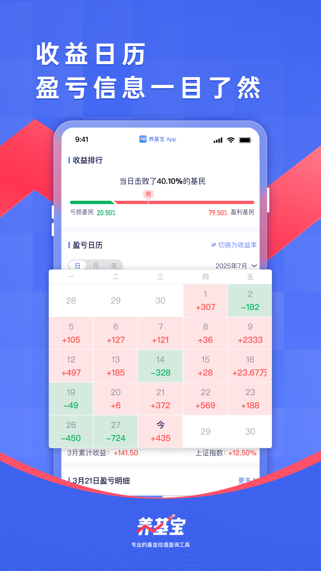 「养基宝」是一款专为基金投资者打造的智能管理工具,集实时行情、持仓管理、数据分析于一体。通过简洁直观的界面,用户可以随时掌握基金动态,做出更明智的投资决策。软件采用先进的数据同步技术,确保信息更新及时准确。无论是新手还是资深投资者,都能在养基宝中找到适合自己的功能模块,享受专业级的投资辅助服务。