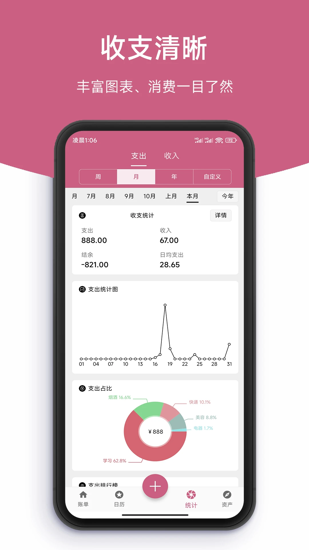 简记账拥有多项实用功能,让你的财务管理更加高效:快速记账功能支持一键记录,多种账目分类让账单一目了然;日历查阅功能可以快速查看每月账单,每日开销明细尽在掌握;多种记账本模式满足不同场景需求,包括日常、家庭、生意、旅行、装修等,还支持自定义月起始日设置;账本导出功能可将数据一键生成Excel表格,方便整理和存档;丰富的图表分析功能,包括收支变化趋势、分类消费排行等,助你快速了解消费情况;分类预算功能帮助你合理规划每月支出,避免超支;数据安全方面提供实时同步和备份功能,确保账单永不丢失;贴心的记账提醒功能让你不再忘记记账;直观的消费趋势图表让你对财务状况了如指掌。