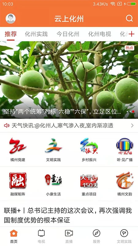 云上化州是化州市广播电视台精心打造的官方移动客户端,作为化州地区最具权威性和影响力的新媒体平台,它以"立足本土、服务群众"为宗旨,深度融合了新闻资讯、政务服务和社区服务三大功能模块。这款APP不仅为用户提供最新最快的本地新闻资讯,还通过创新的融媒技术打造了全方位的数字化服务平台。