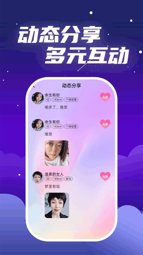 还可轻松在这款软件上进行动态分享或者欣赏他人动态。动态支持多种互动方式,让你的社交体验更加丰富多彩。