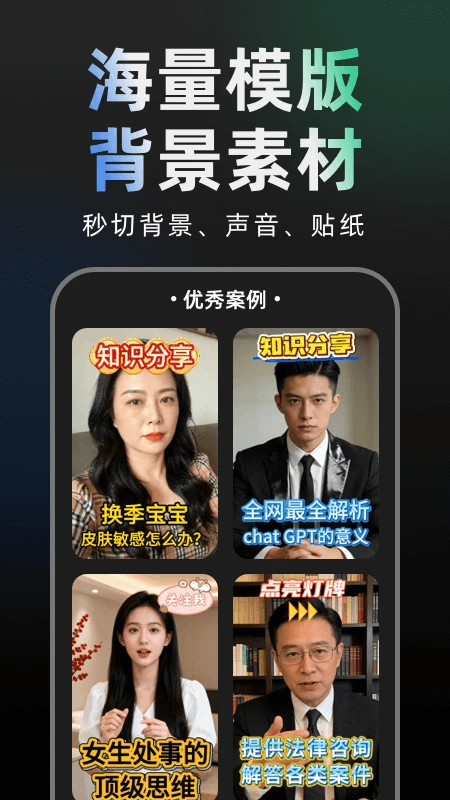 提供海量场景模板和编辑工具,包括美颜滤镜、背景音乐等,实现专业级视频制作。