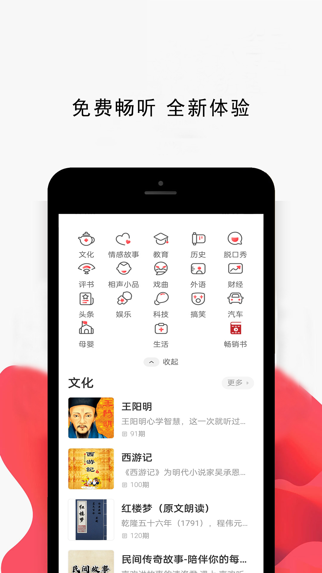 FM免费收音机网罗全网优质声音资源,涵盖新闻、段子、听书、头条、情感生活、商业财经、相声小品、戏曲、娱乐、脱口秀、人文历史、健康养生、少儿节目等众多类别。高清的音质让您享受沉浸式倾听体验,无论是放松休闲还是学习充电,都能找到最适合您的内容。一键收听功能让操作更加简单,让您轻松畅享声音世界。
