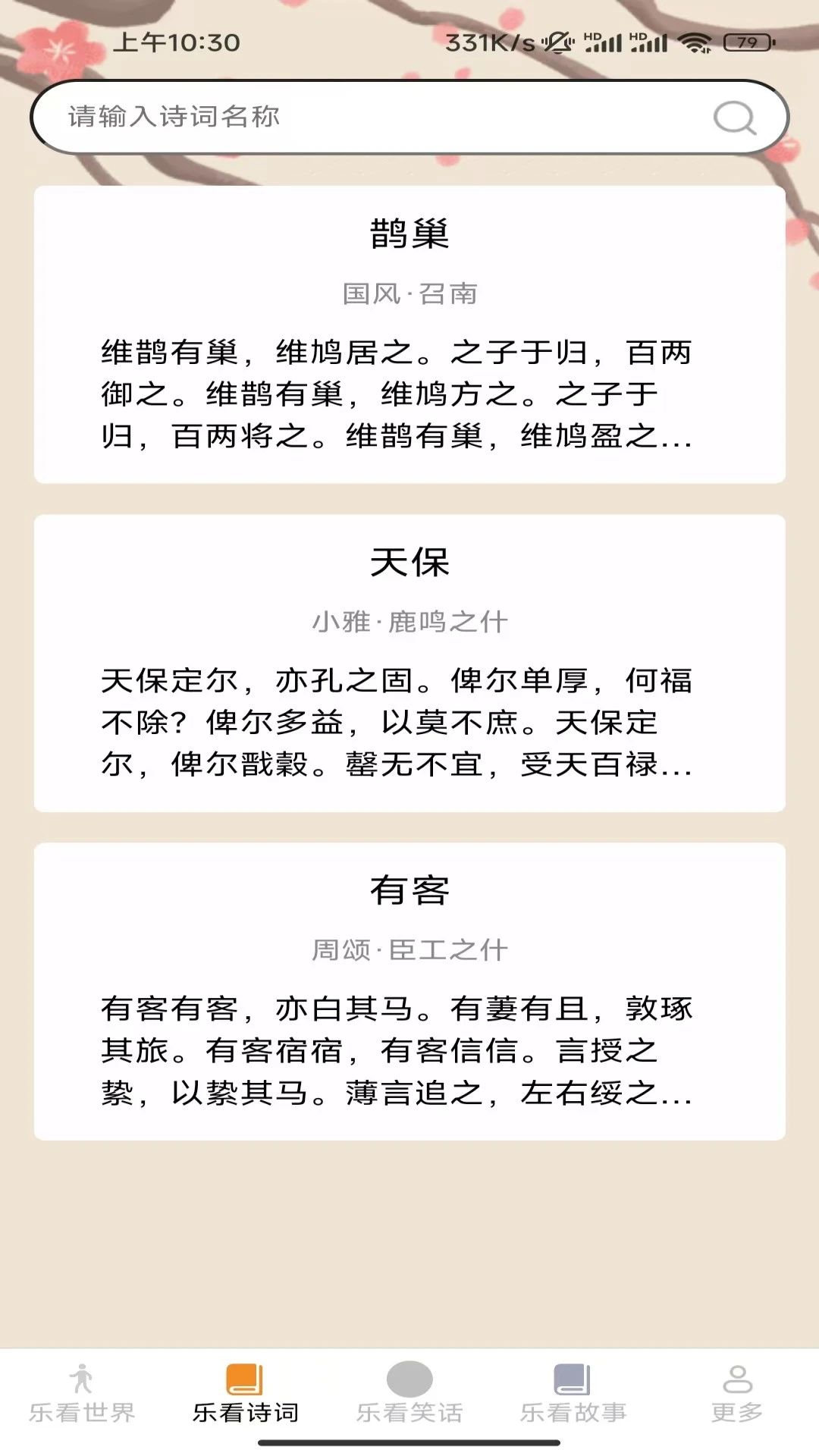 涵养文化,感受古韵之美。精选历代经典诗词作品,配以唯美画面和名家朗诵,让传统文化焕发新生。从唐诗宋词到现代诗歌,从赏析解读到创作背景,全方位展现中华诗词的魅力。特别设置互动学习区,用户可参与诗词接龙、飞花令等趣味活动,在游戏中提升文学素养。