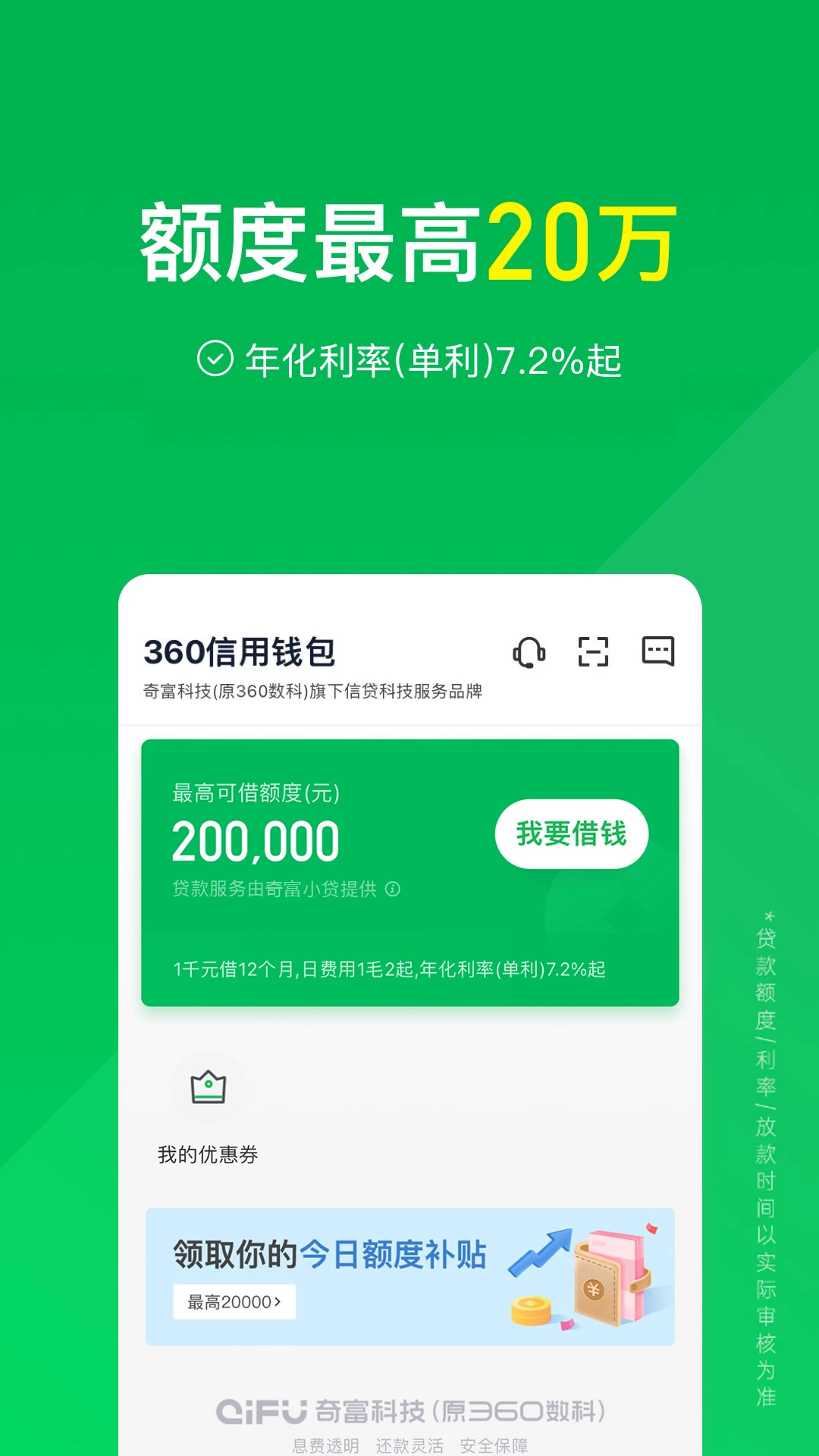 360信用钱包是美股上市公司奇富科技旗下的金融科技平台,拥有强大的技术实力和丰富的行业经验。平台通过创新的金融科技手段,为用户提供全方位的信用服务,包括智能风控、精准授信等核心功能。通过云计算、机器学习、大数据等技术客观评估个人信用,致力于为用户打造专业的消费金融科技平台。平台采用多重加密技术保障用户信息安全,确保交易过程安全可靠。平台亦会提供分期购,分期借等多种现金消费形式,旨在向用户提供正规、便捷、省心的分期消费体验,提升用户的消费生活品质。这些服务覆盖3C数码、家电家具、教育培训等多个消费场景,满足不同用户的多样化需求。