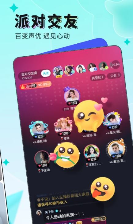 团战、觅友、颜值、相亲等多样化社交场景应有尽有,每个主题派对都经过精心设计,配备专属互动道具和游戏规则,让用户在轻松愉快的氛围中结识新朋友。