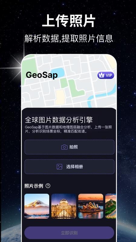 GeoSap最新版是一款功能强大的照片信息提取工具,采用先进的图像分析技术,为用户提供高效便捷的图片解析服务。无论是通过拍照还是上传相册图片,都能快速获取照片的详细数据,包括地理位置、街道坐标等关键信息。软件界面简洁直观,操作流程简单,即使是新手也能轻松上手。GeoSap支持多种图片格式的识别,满足不同用户的使用需求,让获取照片信息变得前所未有的简单。无论是旅行记录、工作需求还是日常使用,这款软件都能为您提供精准可靠的服务。