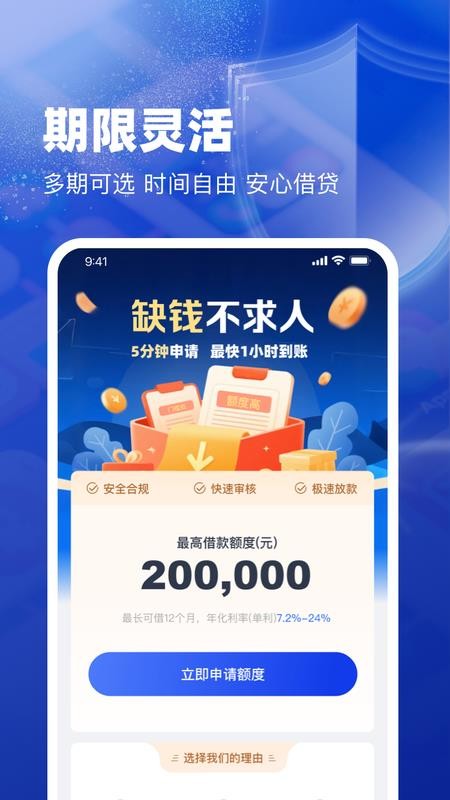 整个贷款流程完全线上化,无需提交纸质材料或面签。用户只需在手机上完成几个简单步骤,就能轻松获得所需资金。